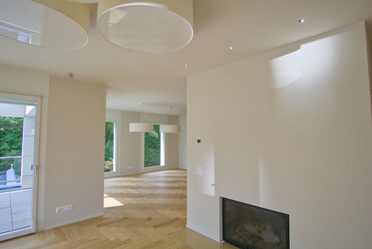 - Züriweiss für die allgemeinen Räume (Wohnzimmer, Flure, Treppe