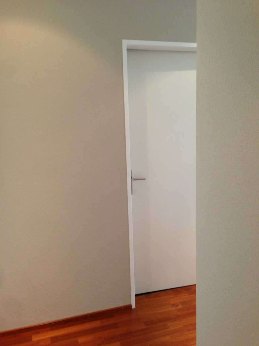 Die Türzargen, mit Acryl satinée gestrichen, wurden zusätzlich mit einem Klarlack ausgerüstet, um die Oberfläche pflegeleichter zu haben und sie besser vor Beschädigungen zu schützen.