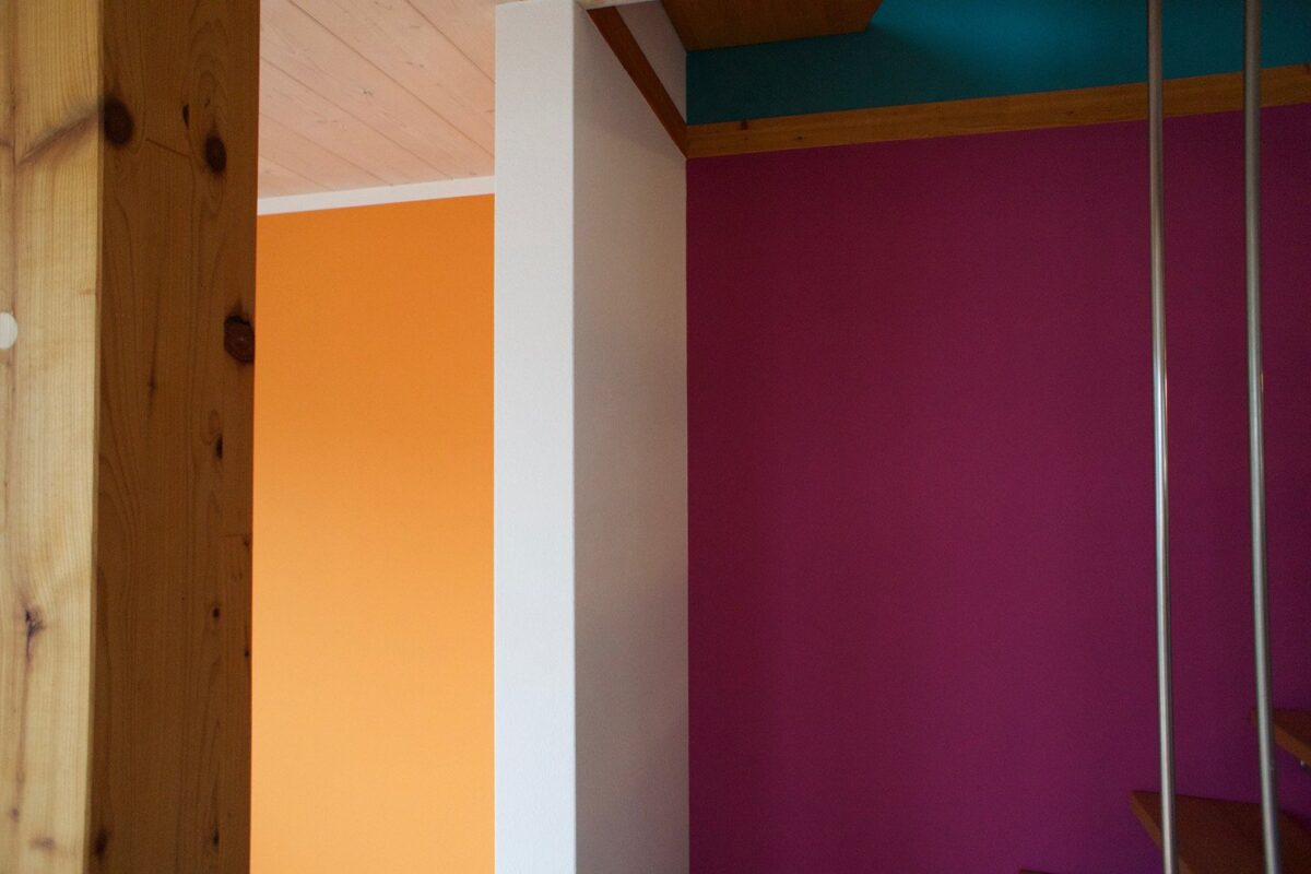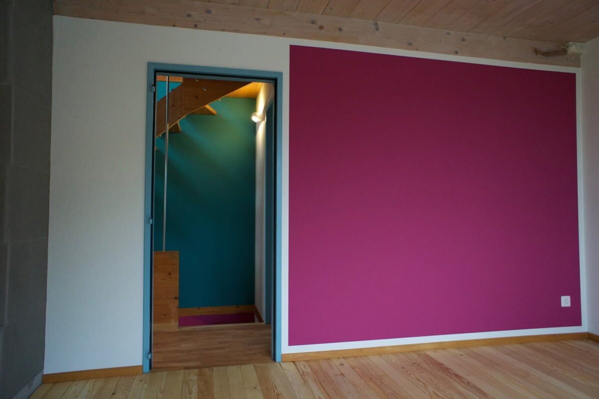 Im Auftrag der Farbgestalterin Monig z’Rotz durften wir dieses mutige, freche, fröhliche Farbkonzept in einem kleinen, ökologisch verantwortungsbewussten Häuschen umsetzen.