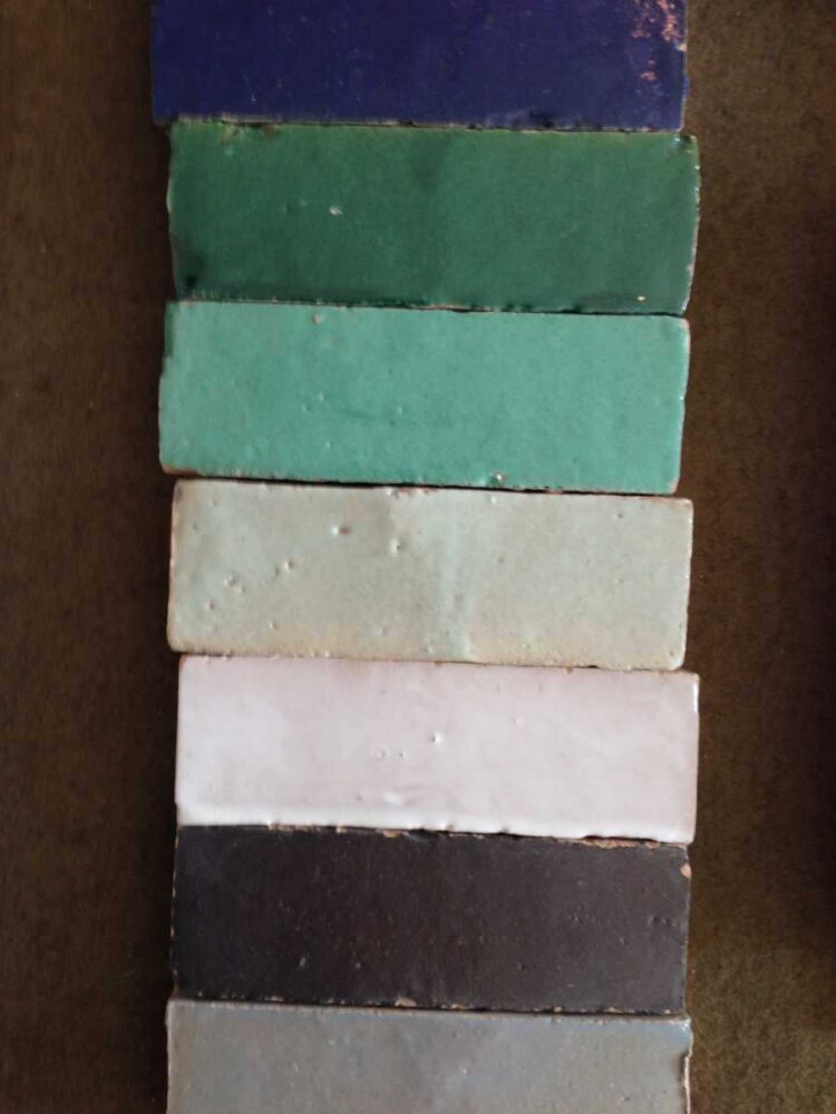 Ich bin in ein Material- und farbenparadies eingetaucht – dutzende und aberdutzende eingefärbter zementfliesen (die alte Schule), und vor allem aber handgemachte, glasierte Fliesen aus Marokko. Keine ist gleich, eine schöner wie die andere.