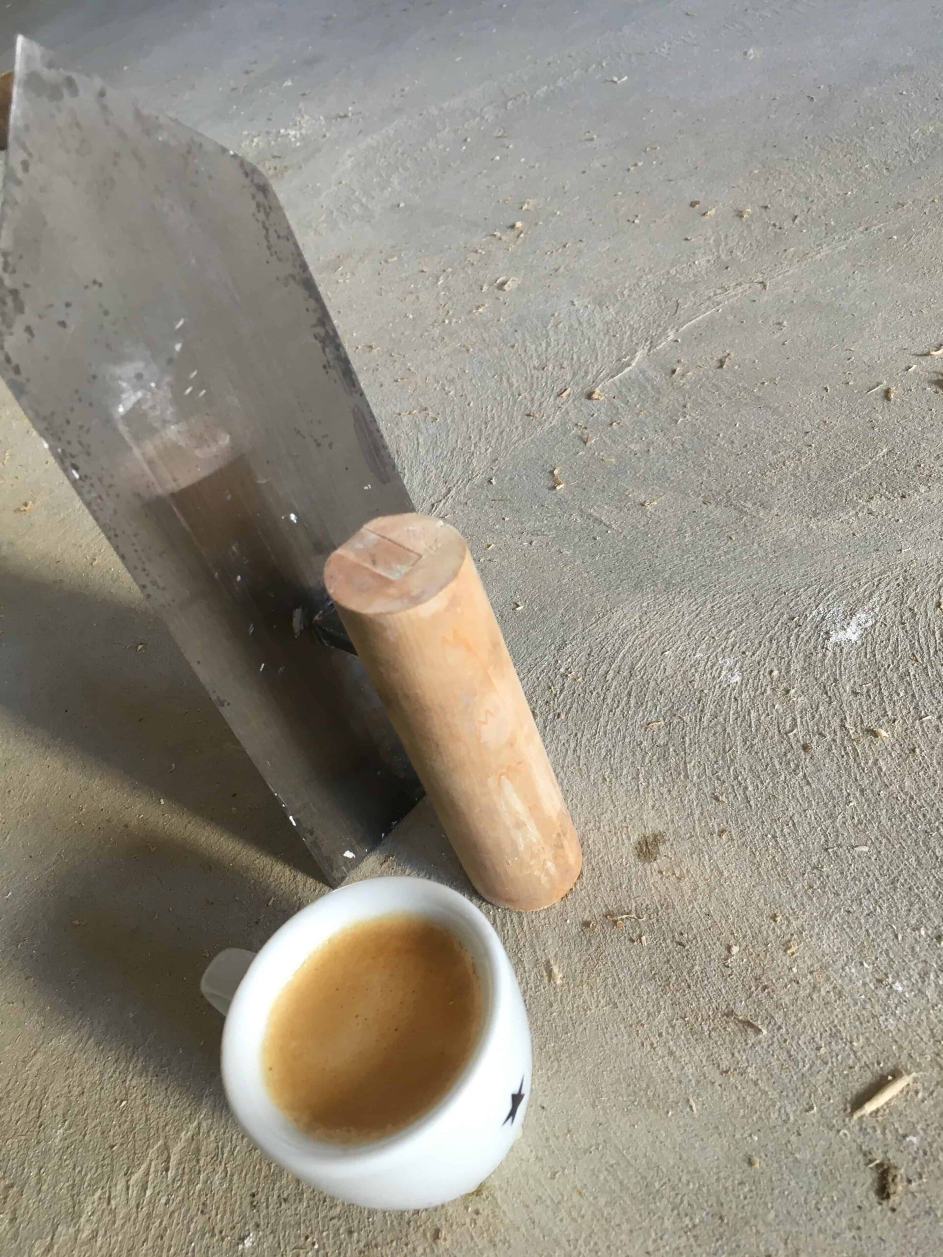 Japanische Bezeichnung für das Erscheinungsbild von geschmiedetem Stahl. Ich verwende unter Anderem sogenannte „Jigane“-Kellen, Japanische, geschmiedete Kellen mit exzellenten Eigenschaften. Vergleichbare Kellen sind die „Ara Gote“ Kellen: Ebenfalls harte, geschmiedete Kellen für Unterputze und eher rohe Oberflächen.