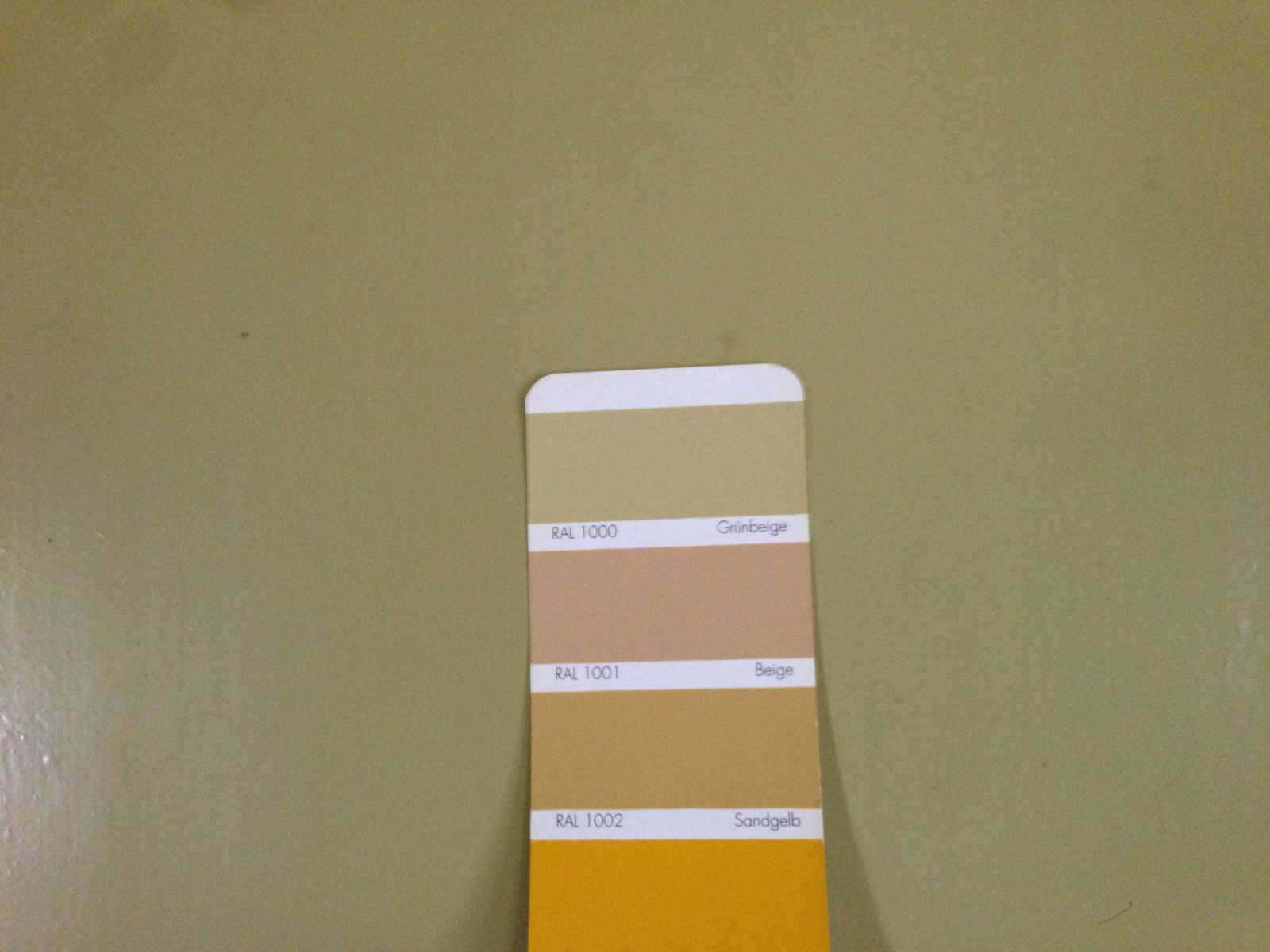 Unter den Sockelleisten, hinter Lichtschaltern und an ähnlich versteckten Ecken, die damals nicht überstrichen wurden, war der ursprüngliche Farbton (in etwa ein Ultramaringrün) noch sichtbar.