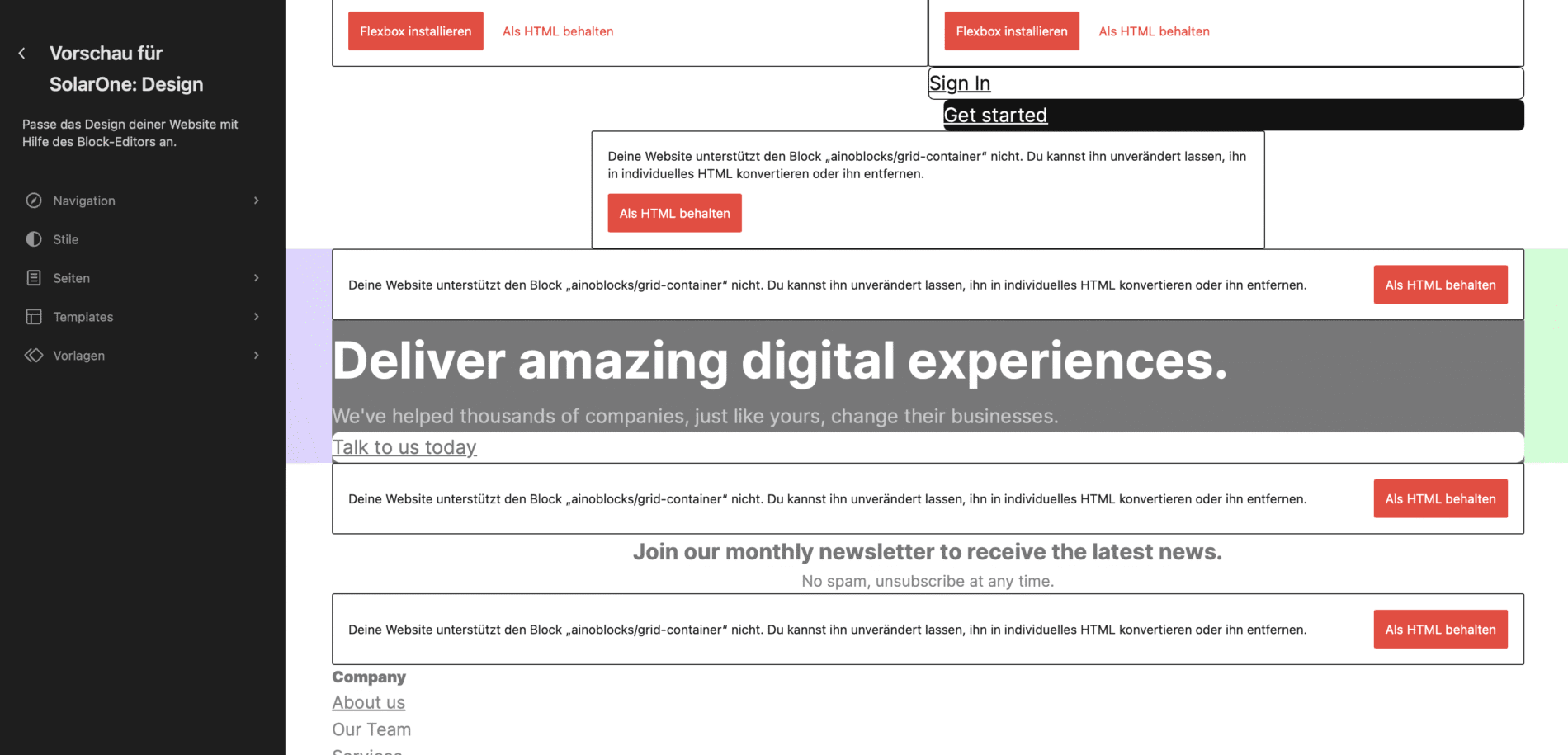 screenshot vom update… Hier ist der screenshot vom gewollten update in der theme-voransicht…Die Blöcke sollten natürlich irgendwie etwas anders sein. liegt das an den Versionen?