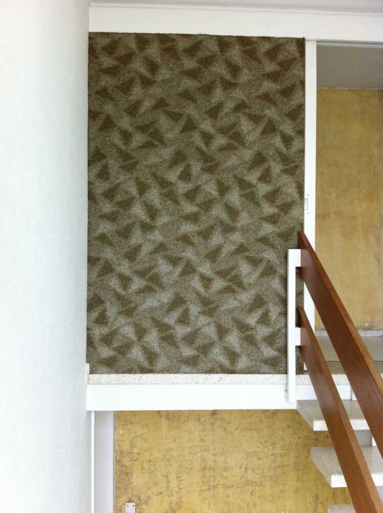 Die zweite Herausforderung: Wandteppiche an jeder Rückwand. Vor 40 Jahren waren sie mal modern. Aber nie schön. Runter damit. Die Rückwände sind neu, passend und praktikabel herzurichten.