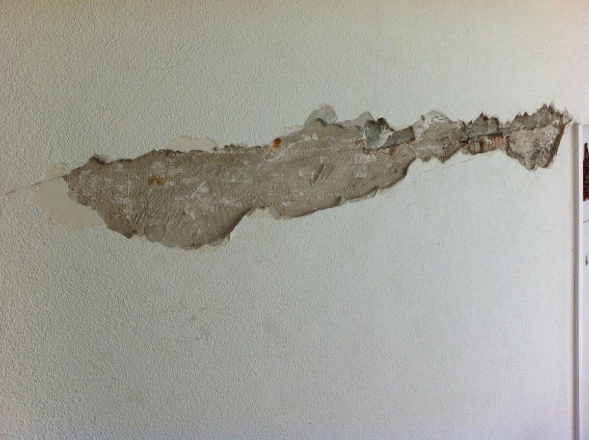 Die dritte Herausforderung: Die Wolkenbrüche 2003 haben das Treppenhaus in Mitleidenschaft gezogen: Stehendes Wasser im Untergeschoss, morscher Putz einen halben Meter hoch.