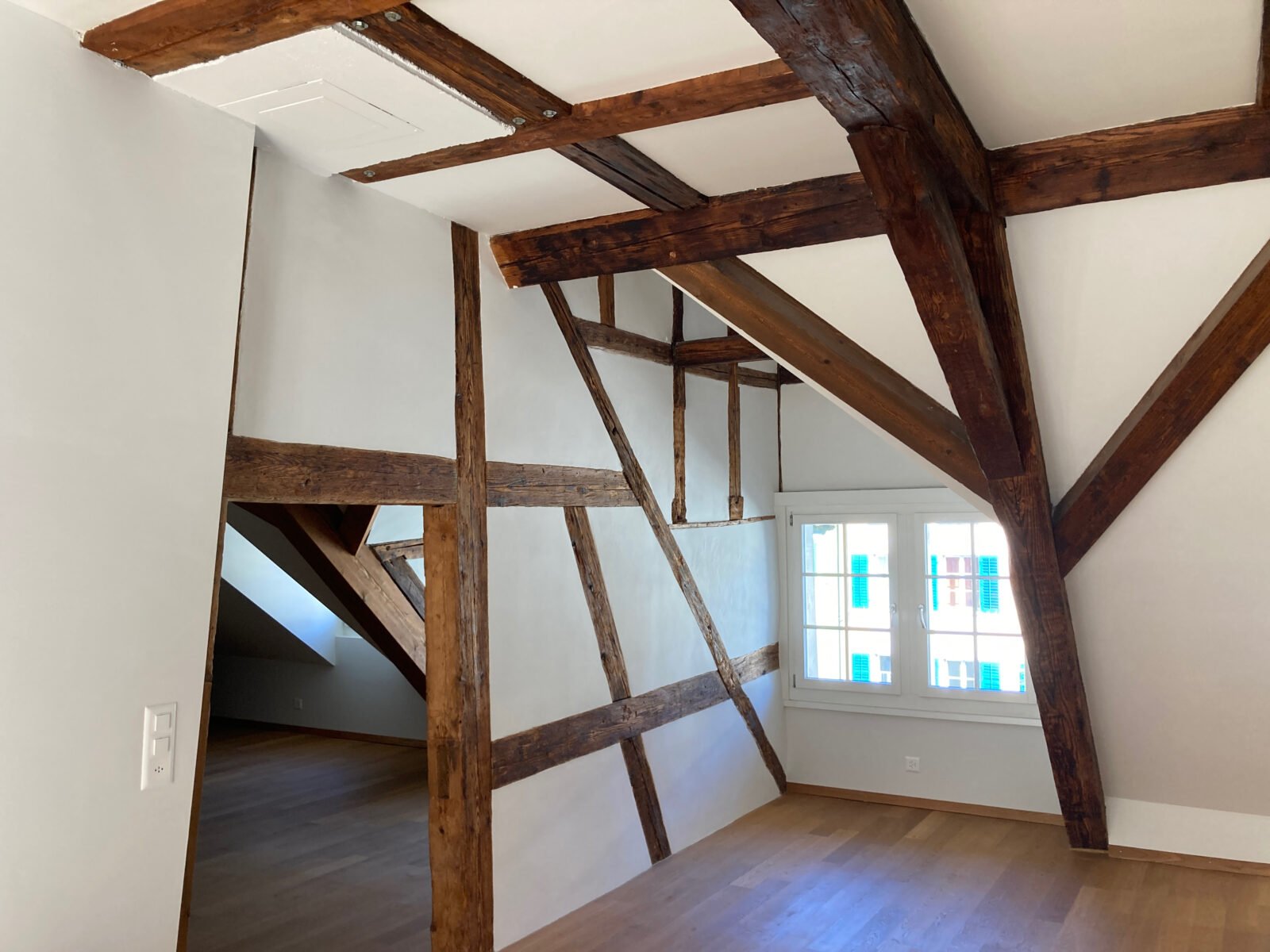 Die Dachstock-Wohnung eines Altstadt-Hauses durfte aufgefrischt werden. Weiss ward gewünscht…