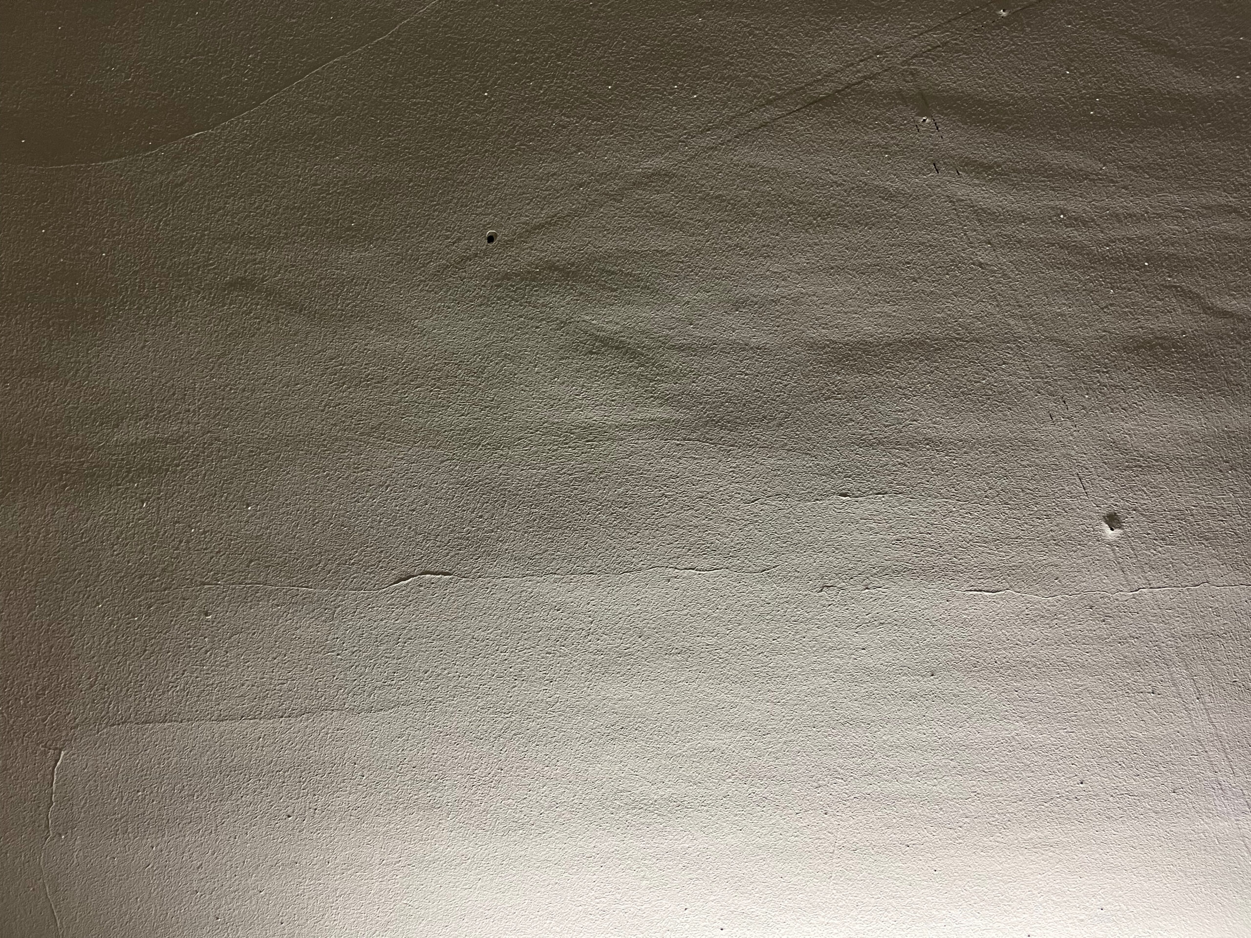 Wahrscheinlich Mattfarbe auf Leimfarbe, und später zusätzliche Dispersionsanstriche darüber. Der Gips darunter erstickt und wird morsch, mit den ersten Abplatzungen hier und dort, und niemand weiss, ob ein weiterer Anstrich überhaupt noch machbar sei oder ob dann grosse Teile herunterkommen.