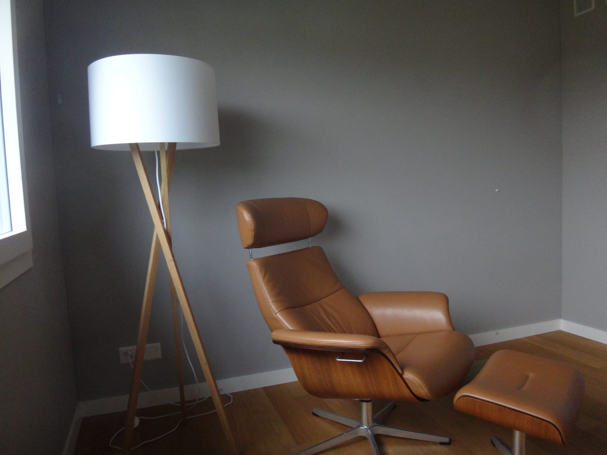 Mit dem wunderbar in sich ruhenden Dämmergrau von kt.color wird das Schlafzimmer in seiner Räumlichkeit erfassbar. Das ausgesuchte Mobiliar wird genauso wie die Bewohner warm und klar konturiert. Sie treten in den Mittelpunkt des Geschehens (beachten Sie das erste Bild, wie die Wand dahinter den Holzleisten der Lampe den Rahmen zeichnet).